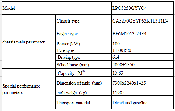 底盤主要性能參數(shù) | 底盤型號 | CA5250GYYP63K1L3T1E4 | |